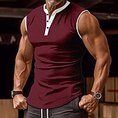 More information about Men's Tank Top Henley Shirt Vest Top Undershirt Sleeveless Henley Summer Color Block Pit Strip Fashion Designer Muscle Outdoor Going out Gym Black White Wine Top Tee for Men