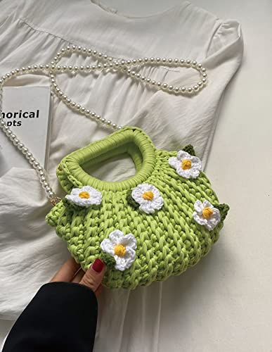 HOT ! Small Crossbody Bag for Women Crochet Purse with Flower Hand Knitting Cute Boho Bag (Green)