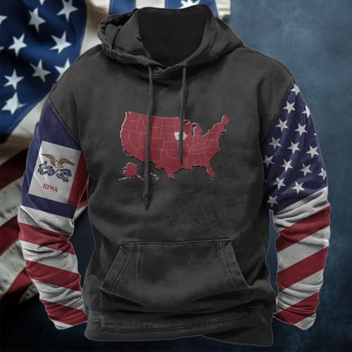 HOT ! MARSVOVO Patriotic American States Flag Hoodie for Men Personalized Custom Oversized Comfy Graphic Hooded Sweatshirts