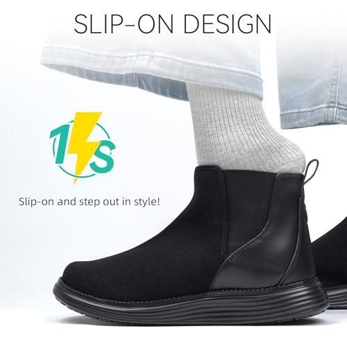 • Effortless Slip-On with Elastic Sides: Thanks to the convenient slip-on design and elastic side panels, you can easily put on or take off these boots without bending down or using your hands, perfect for busy lifestyles.