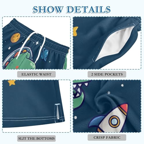 More information about DOMIKING Dinosaur Planet Blue Kids Shorts Pull-on Boys Shorts with Elastic Waist Casual Athletic Pants for Playwear Summer