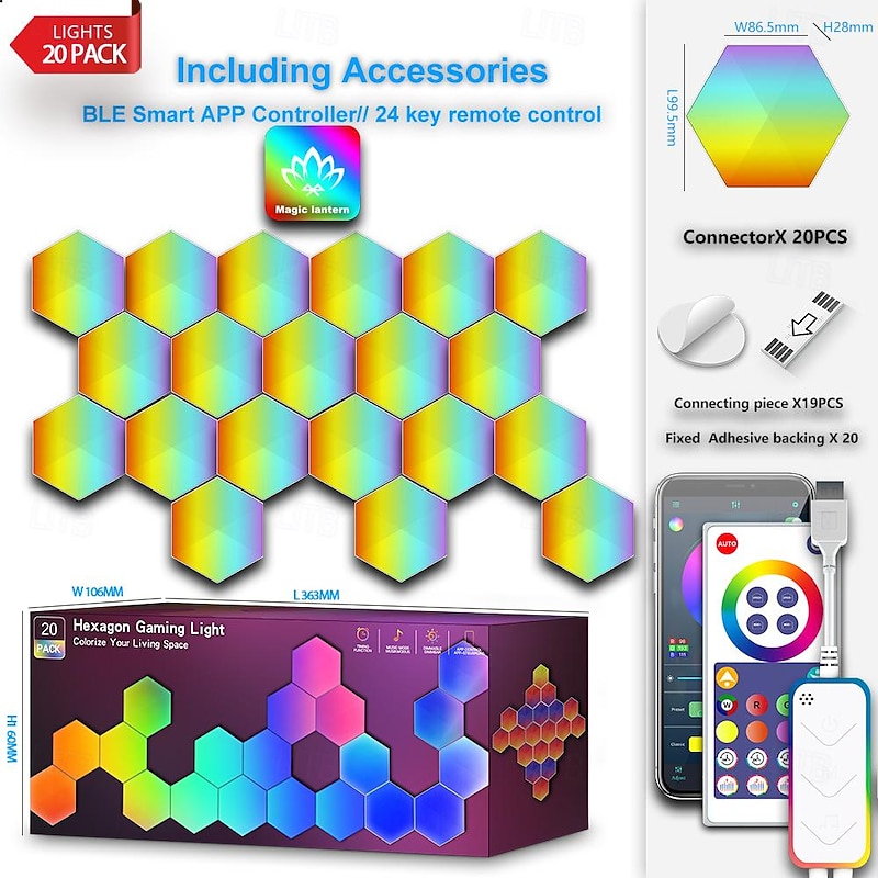 HOT ! LED Smart Light Smart Hexagon Lights, DIY Hexagon Gaming LED Light with App Remote Control Music Sync RGBIC Wall Light Panels for Gaming Room, Bedroom, Living Room Decor