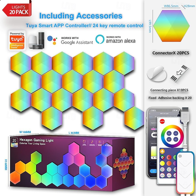 LED Smart Light Smart Hexagon Lights, DIY Hexagon Gaming LED Light with App Remote Control Music Sync RGBIC Wall Light Panels for Gaming Room, Bedroom, Living Room Decor 1