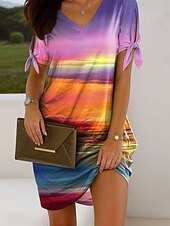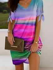 More information about Women's Mini Dress Casual Dress T Shirt Dress Tee Dress Summer Dress Elegant Vacation Vintage Cold Shoulder Regular Fit Ombre Graphic Short Sleeve V Neck Pink Blue Orange Green Summer Spring