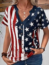 HOT ! Women's Patriotic T Shirt Graphic American Flag Vintage Stylish Casual Short Sleeve V Neck Regular Tops Daily Weekend Print Blue Summer