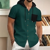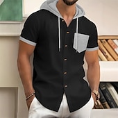 More information about Men's Shirt Waffle Shirt Summer Shirt Casual Shirt Beach Shirt Button Up Shirt Black Wine Dark Green khaki Gray Short Sleeve Color Block Hooded Vacation Hawaiian Front Pocket Clothing Apparel