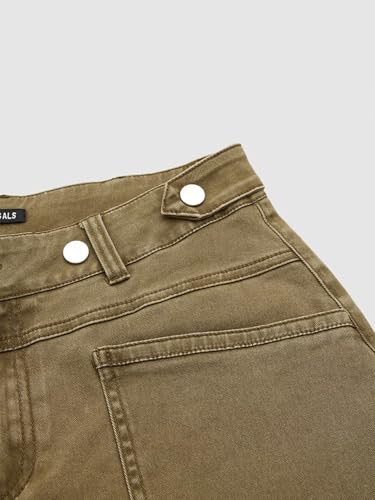 • Feature: Flattering mid waist design with smooth button closure for tummy control and all-day comfort, wide leg silhouette balances body proportions, cropped length with roll hem detailing creates modern casual style, functional side pockets keep essentials secure.