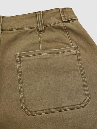 Flamingals Roll Hem Women Mid Waist Comfort Stretch Wide Leg Crop Pants Casual Button Detail Pocket 6