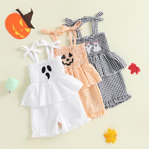 Rtnnsbbfcm Baby Girl Halloween Outfit Pumpkin Face Smocked Romper Sleeveless Short Jumpsuit Toddler Halloween Clothes 5