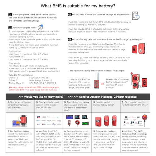 More information about DALY BMS 48V 16S 150A Display - Smart BMS with 3 Inch LCD Screen WiFi Bluetooth Module Supports RS485 CAN for 48V LiFePO4 Golf Carts Electric Outboard Motors Solar Energy Power Systems