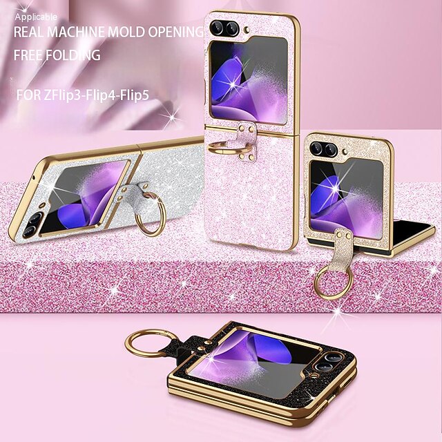 More information about Phone Case For Samsung Galaxy Z Flip 6 Z Flip 5 Z Flip 4 Z Flip 3 Back Cover Portable Bumper Frame Plating sky Glitter Shine TPU PC Metal