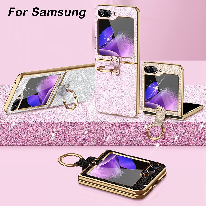 HOT ! Phone Case For Samsung Galaxy Z Flip 6 Z Flip 5 Z Flip 4 Z Flip 3 Back Cover Portable Bumper Frame Plating sky Glitter Shine TPU PC Metal