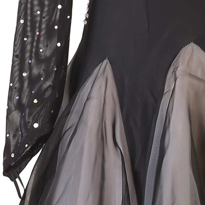 Ballroom Dance Dress Crystals / Rhinestones Women's Performance Long Sleeve Spandex Organza 2