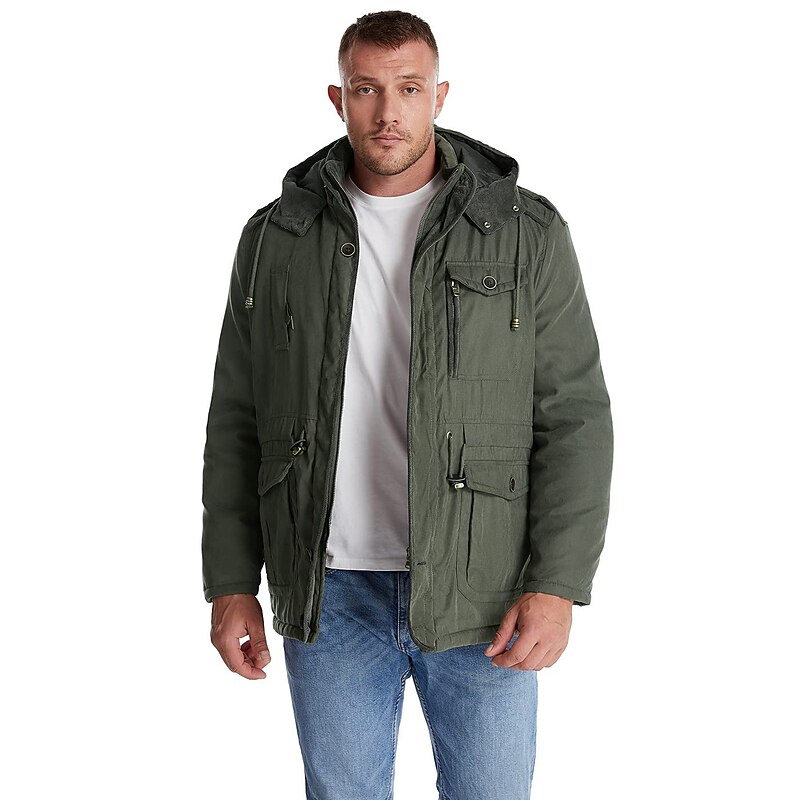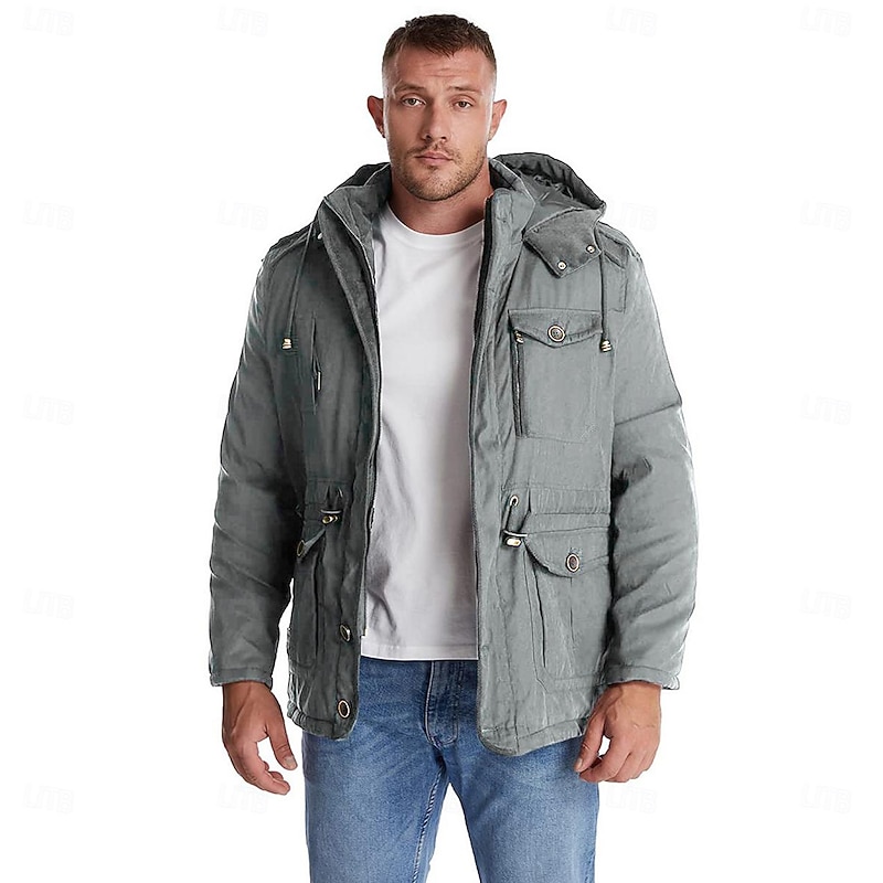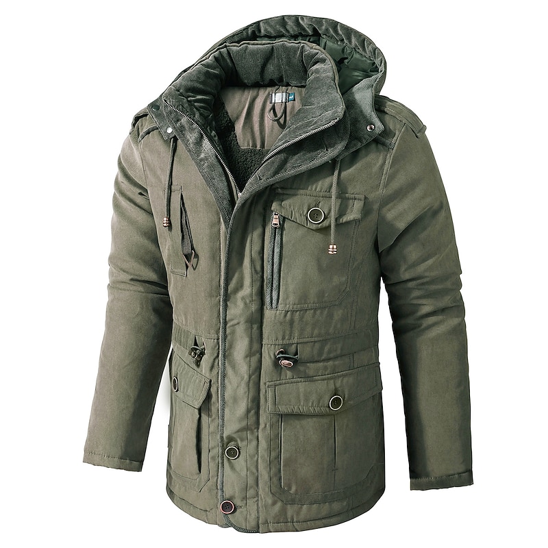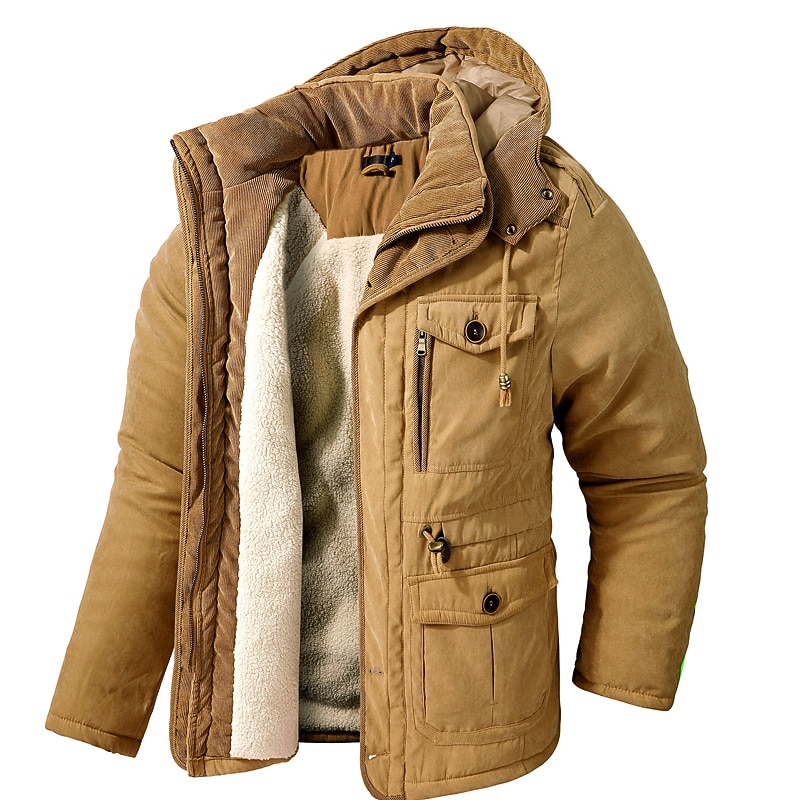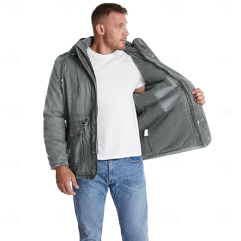 More information about Men's Winter Hooded Jacket Military Jacket Warm Parka Windproof Sherpa Lined Fleece Jacket Windbreaker Thicken Trench Coat Outerwear Lightweight Breathable Climbing Traveling Fishing Skiing Khaki