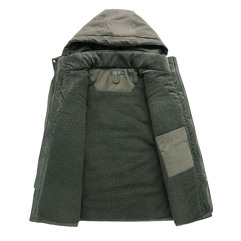 HOT ! Men's Winter Hooded Jacket Military Jacket Warm Parka Windproof Sherpa Lined Fleece Jacket Windbreaker Thicken Trench Coat Outerwear Lightweight Breathable Climbing Traveling Fishing Skiing Khaki
