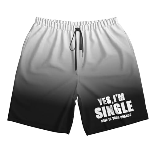 HOT ! Yes I'm Single Men's Casual Board Shorts - Elastic Waist Drawstring Swim Trunks Fit Summer Hawaii Beach Swimwear,