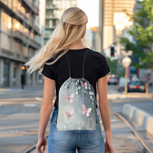 Erosebridal Oil Painting Draw String Back Bag,Rustic Aesthetics String Backpack,Butterfly Eucalyptus Drawstring Backpack 13X15.7,Wild Animal Plants Cinch Bag Waterproof 1