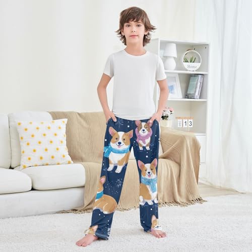Winter Corgi Dogs Boys Long Pants Soft Trousers Elastic Waist Kids Lounge Bottoms with Pockets S-XL 4