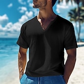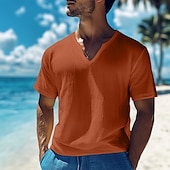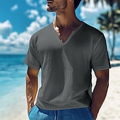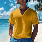 More information about Men's Cotton Linen T Shirt Tee Top Short Sleeves V Neck Summer Plain Fashion Designer Basic Classic Vacation Casual Daily Black White Yellow Top Tee for Men