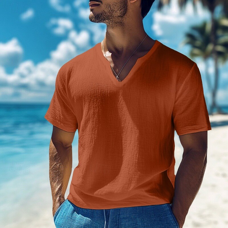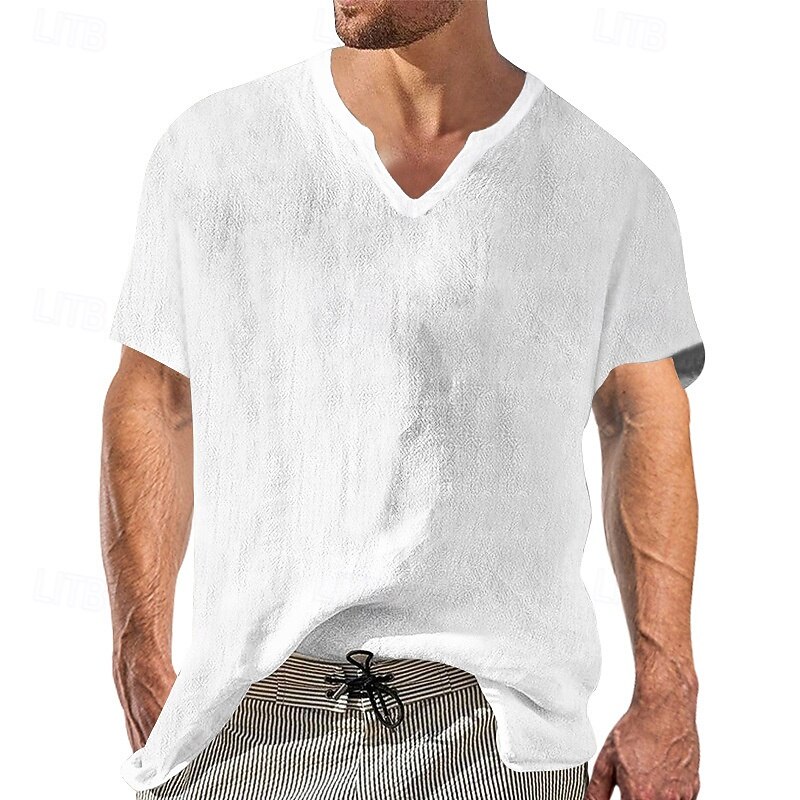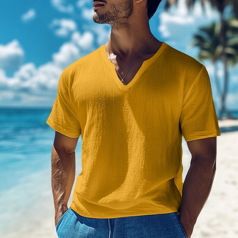 Men's Cotton Linen T Shirt Tee Top Short Sleeves V Neck Summer Plain Fashion Designer Basic Classic Vacation Casual Daily Black White Yellow Top Tee for Men 7