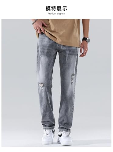 Jeans Pants Trousers Denim Spring and Autumn Grey Ripped Men's Loose Fit Small Leg Trendy Straight Long 6