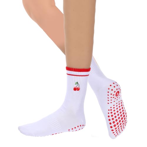 Cute Pilates Socks with Grips for Women Yoga Grip Socks Cherry Grippy Sock Woman for Women Yoga Hospital Barre Barefoot Workout 5