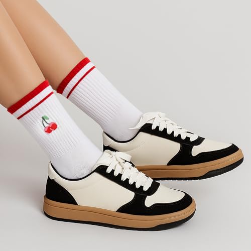 • 【Fashionable Cherry and Stripe Design】The grippy socks woman are decorated with delicate ruffles at the ankles and embellished with vivid red cherry embroidery, bringing a sweet and energetic feeling. The matching red stripes cleverly lengthen the leg lines, making the legs look longer. Wearing pilates socks with grips for women, you can easily show your fashion taste even when exercising