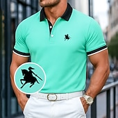 More information about Men's Cotton Polo Shirt Golf Polos Shirts Work Business Ribbed Polo Collar Classic Short Sleeve Basic Modern Solid Color Buttons Logo Summer Spring & Summer Regular Fit Light Green Cotton Polo Shirt