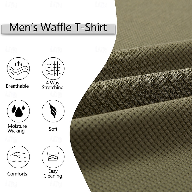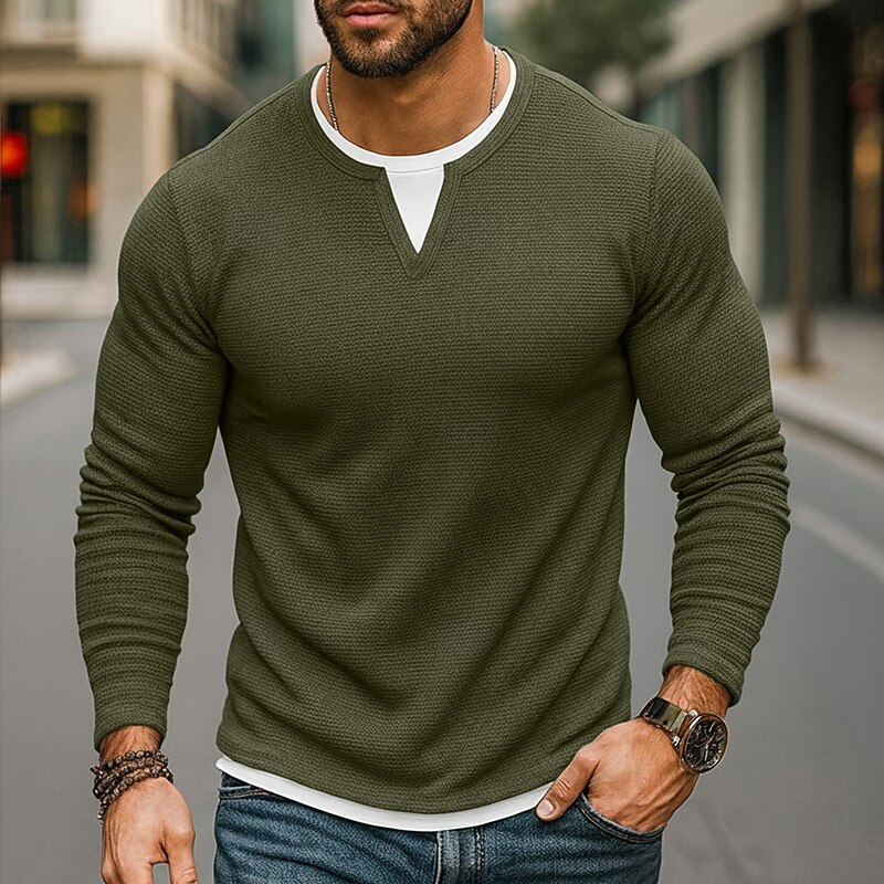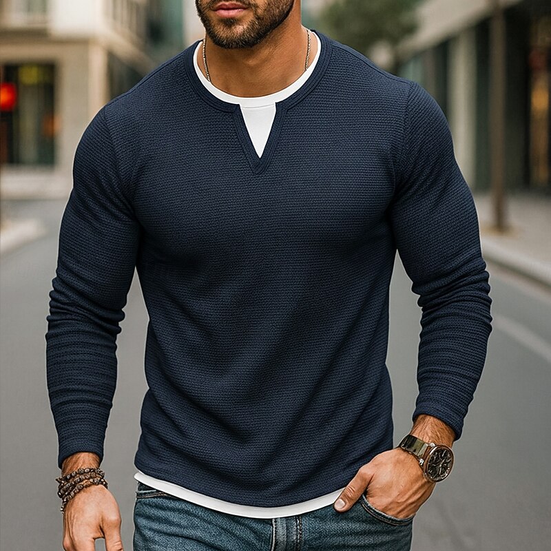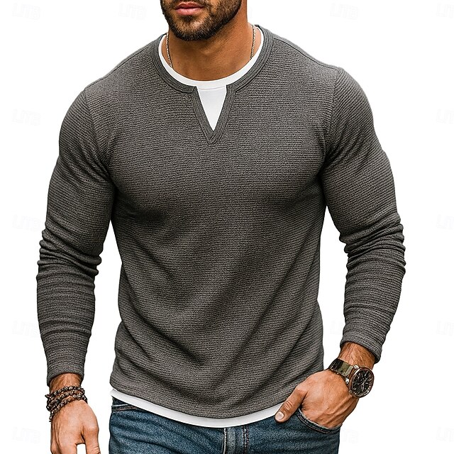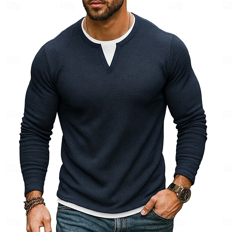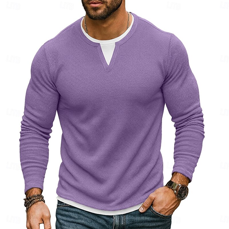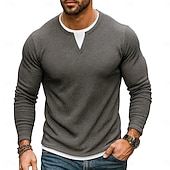 More information about Men's Waffle T-shirt T Shirt Waffle Henley Shirt Long Sleeve Crew Neck V Neck All Seasons Solid Color Traditional / Vintage Casual Fake two piece Outdoor Home Sports & Outdoor Navy Blue Purple Army