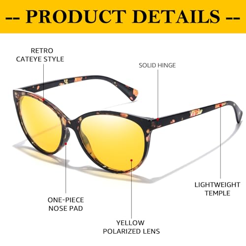 FIMILU Cat-eye Night Vision Glasses for Women, Polarized Night Driving Glasses Anti-Glare and Enhance Vision at Night 8081 5