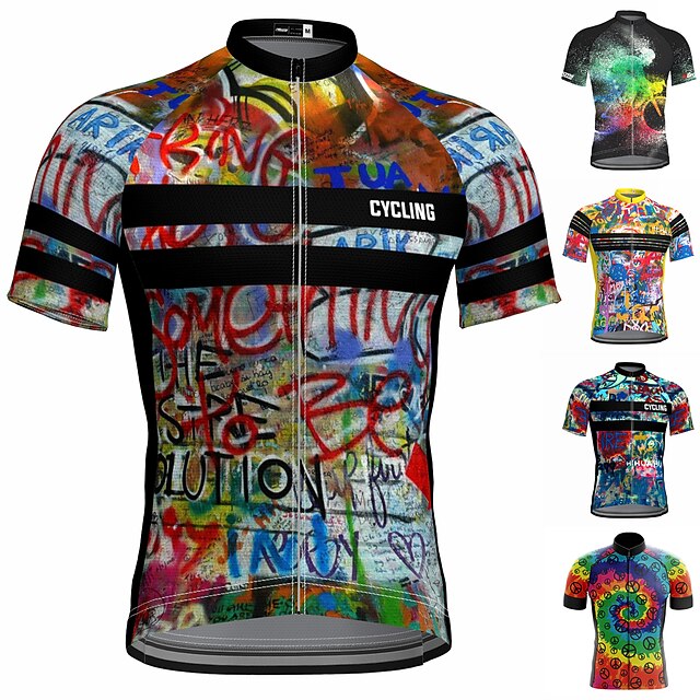 HOT ! Men's Cycling Jersey Graffiti Funny Short Sleeve Bike Jersey Top with 3 Rear Pockets Mountain Bike MTB Road Bike Cycling Quick Dry Reflective Strips Back Pocket Moisture Wicking Sports Black Yellow
