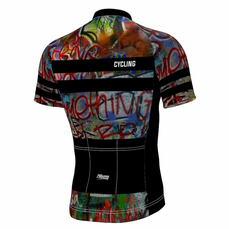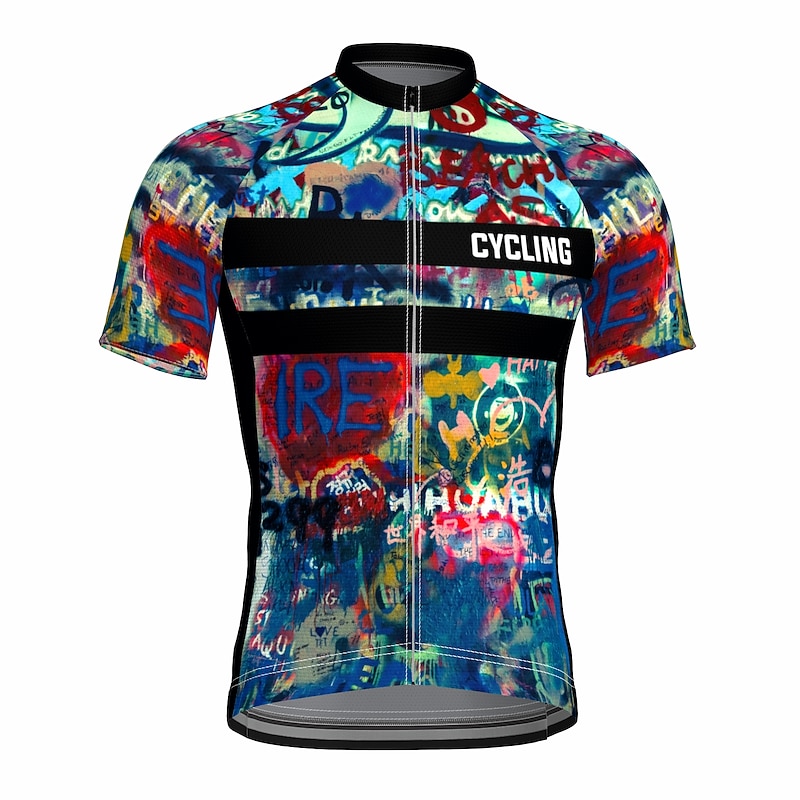Highlights - Classic 3-pockets for storing essentials like wallet, maps, and snacks - Quick-dry fabric offers moisture management to keep you dry and comfortable during your ride - Anti-slip silicone hem prevents sliding while pedaling, with cuffs made of high elastic tricot fabric for added anti-skid function - Reflective strip ensures visibility for added safety when cycling in dark conditions, helping to avoid traffic accidents - Suitable for men's athletic and leisure activities, including mountain bike MTB and road bike cycling - Eye-catching graffiti pattern adds a stylish touch to your cycling wardrobe