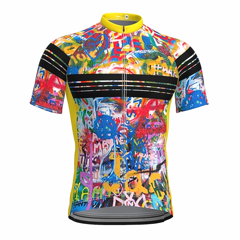 Men's Cycling Jersey Graffiti Funny Short Sleeve Bike Jersey Top with 3 Rear Pockets Mountain Bike MTB Road Bike Cycling Quick Dry Reflective Strips Back Pocket Moisture Wicking Sports Black Yellow 10
