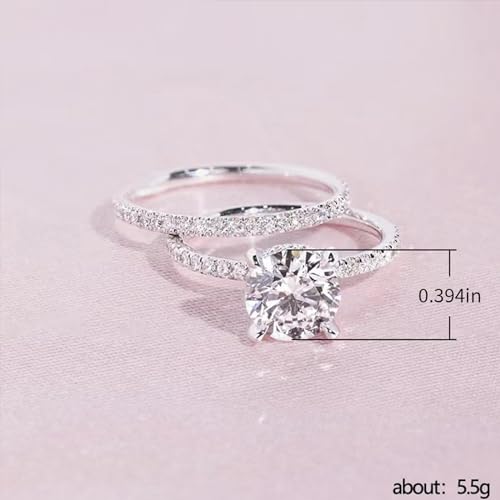 HOT ! Fake Wedding Rings for Women Travel Wedding Rings Sets for Her Silver CZ Wedding Rings Non Tarnish Halo Cubic Zirconia Faux Wedding Bands Bridal Sets Wedding Rings Jewelry Gifts