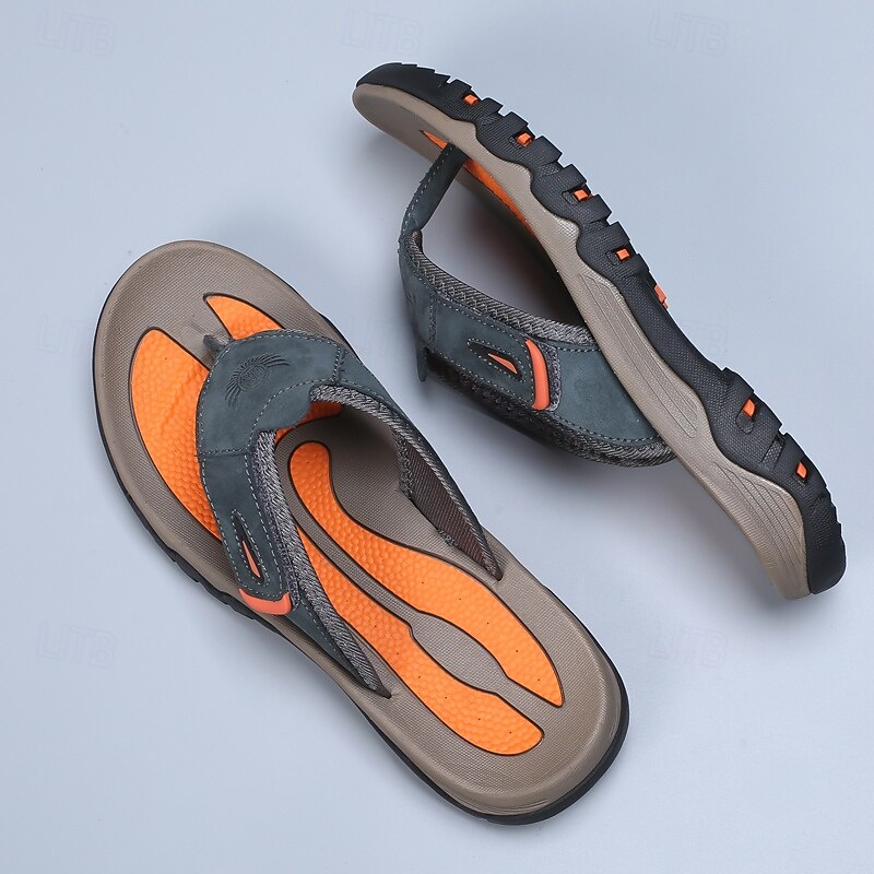 HOT ! Men's Outdoor T-Strap Flip Flop Sandals with Cushioned Sole Durable Tread Sporty Look for Adults Suitable for Beach Activities Hiking Poolside Use Summer Vacation