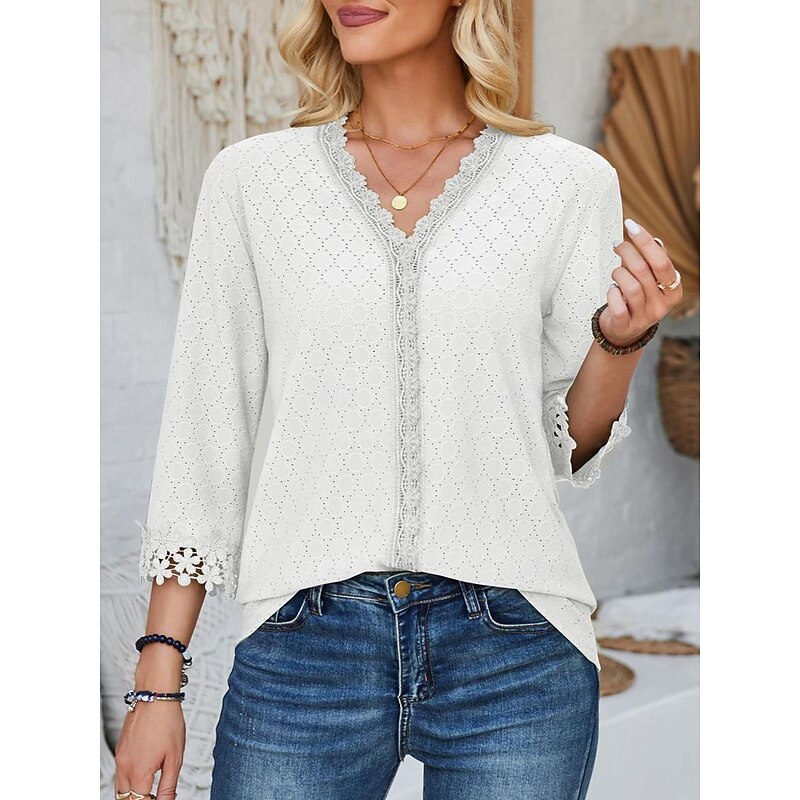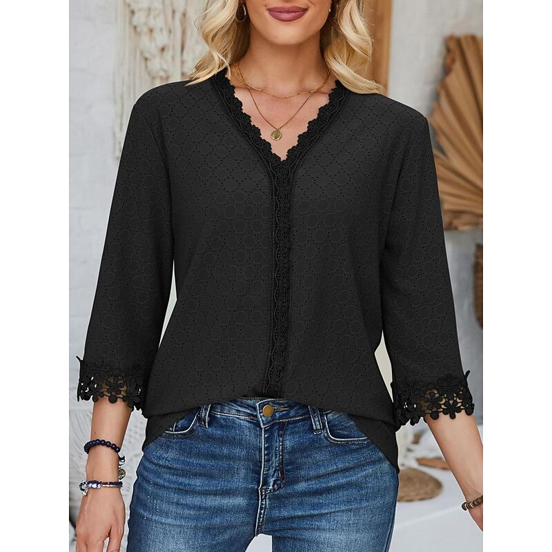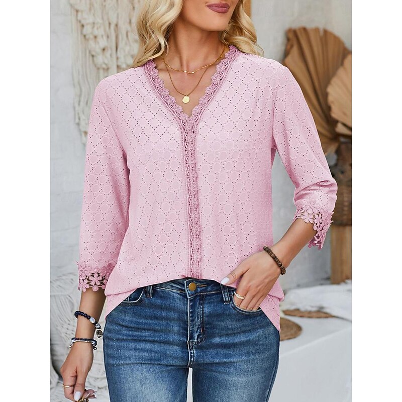 Women's Blouse Dressy Tops Daily 3/4 Length Sleeve V Neck Lace Sage Green Black Pink Beige Spring & Summer 12