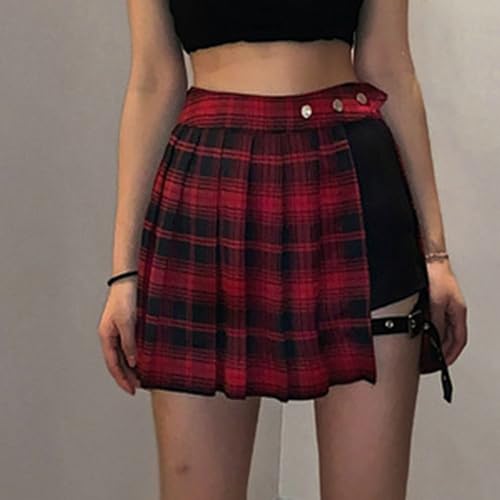 HOT ! Plaid Mini Skirts for Women Ruched Asymmetrical Hem High Waist Short Skirts Trendy Going Out Y2k Casual A-Line Skirt
