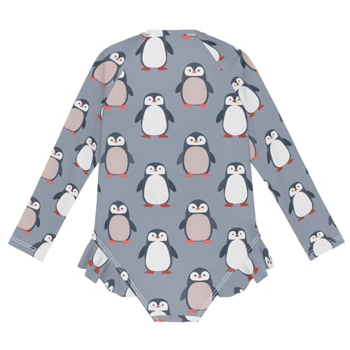 Penguin Animal Pattern Girls Long Sleeve Swimsuit Rash Guard One Piece Bathing Suits Zipper 3-12T 3