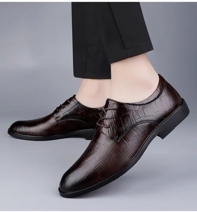 Oxford Shoes for Men Lace Up Round Burnished Toe Leather Derby Shoes Block Heel Rubber Sole Low Top Non Slip Party 6