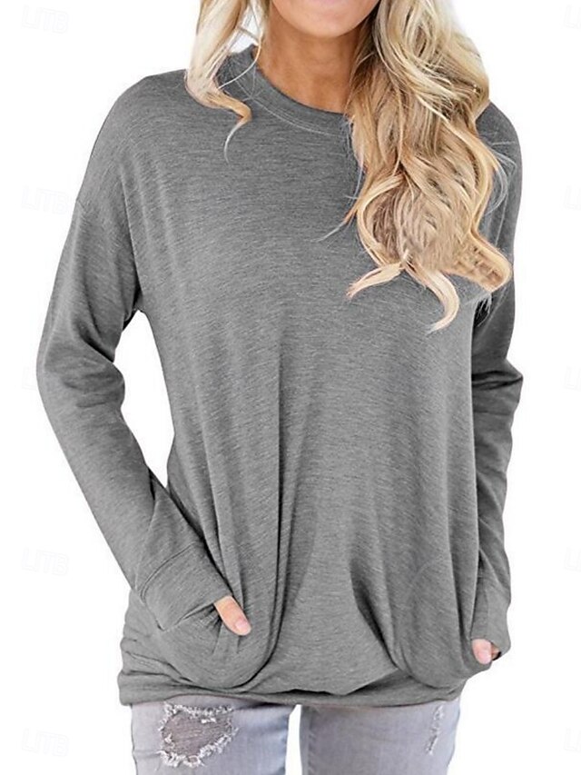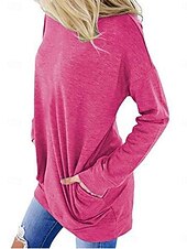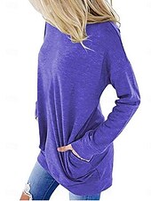 More information about Women's T Shirt Plain Stylish Classic Modern Short Sleeve Crew Neck Regular Tops Daily Weekend Pocket Red Blue Purple Gray Summer Spring Fall