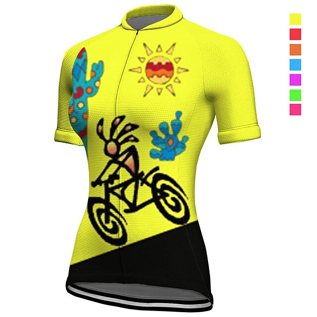 Women's Cycling Jersey Graphic Short Sleeve Bike Jersey Top with 3 Rear Pockets Mountain Bike MTB Road Bike Cycling Quick Dry Reflective Strips Back Pocket Moisture Wicking Sports Violet Yellow Pink 19