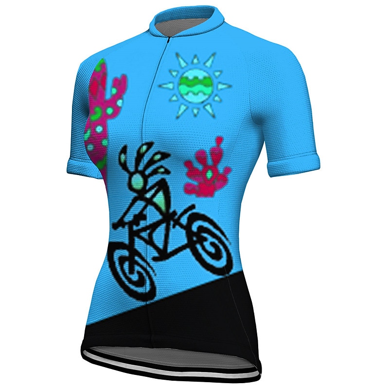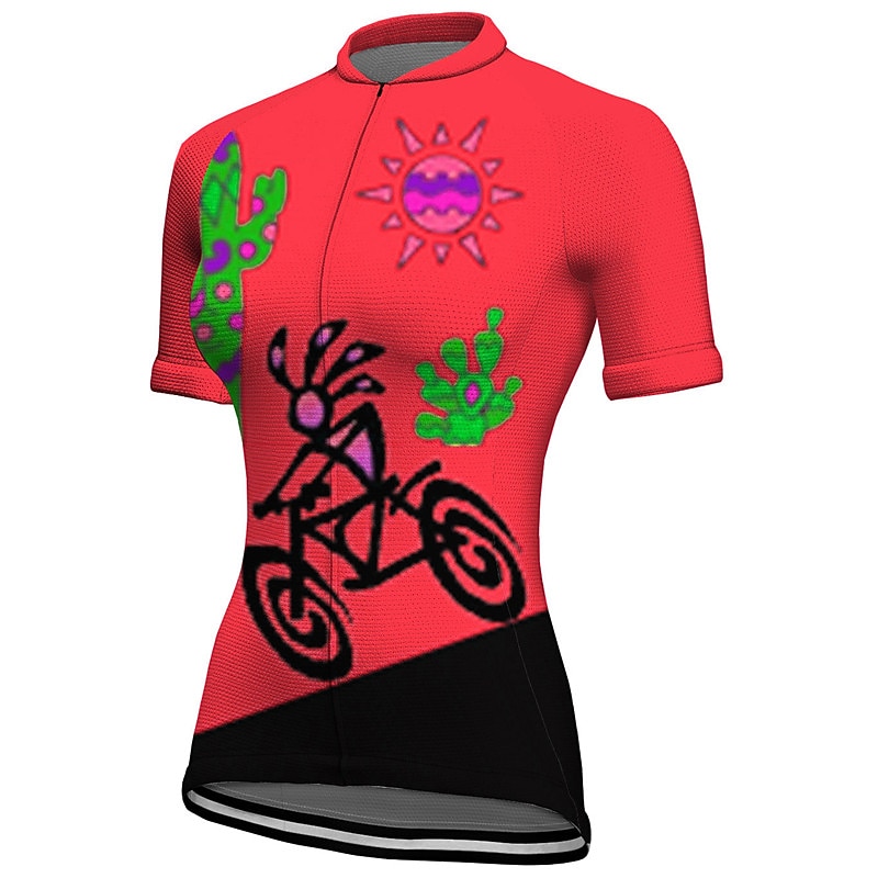 Highlights This 21Grams cycling jersey for women is tailored for a snug fit in a breathable quick-drying polyester fabric Its graphic design complements its vivid hues of violet yellow and pink It boasts 3 rear pockets and reflective strips for function and safety Best worn for summer cycling on road mountain or city terrain Showcase this top's short sleeves
