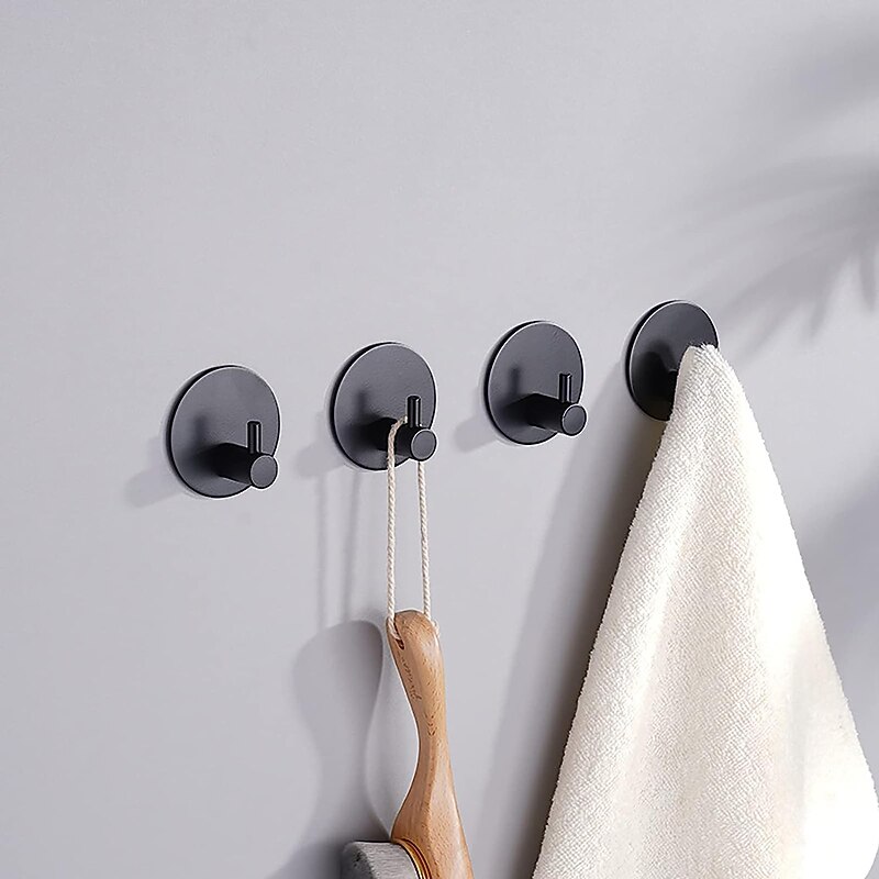 HOT ! 4pcs Self-Adhesive Wall Hooks Stainless Steel Matte Black Wall Mounted Towel Hooks, Stainless Steel Kitchen Bathrooms Robe Black Hooks, Towel Stands Sticky Wall Hook