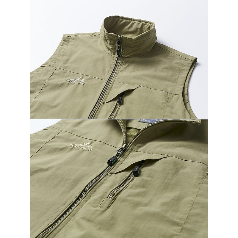 More information about Men's Waterproof Fishing Vest Hiking Vest Sleeveless Outerwear Jacket Zip Top Outdoor Windproof Ultra Light (UL) Quick Dry Autumn / Fall Spring Back Venting Design Chinlon Solid Color Red Army Green