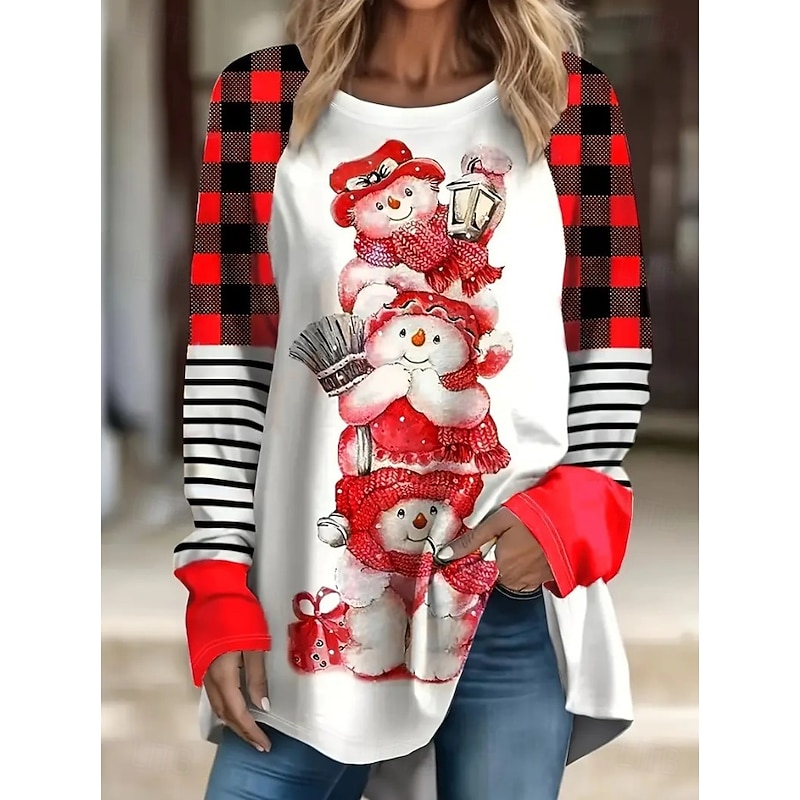 Christmas Women's T Shirt Graphic Animal Snowflake Vintage Stylish Classic Long Sleeve Crew Neck Long Tops Daily Going out Weekend Print Pink Red Blue Purple Green Spring Fall Winter 11