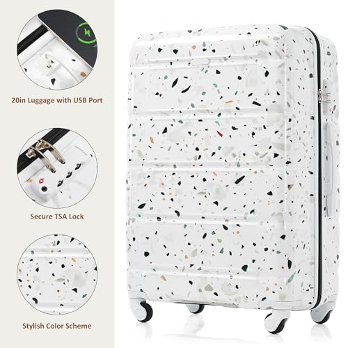 • **Convenient USB Port**: Stay charged on the go with the built-in USB port on the 20-inch carry-on suitcase.