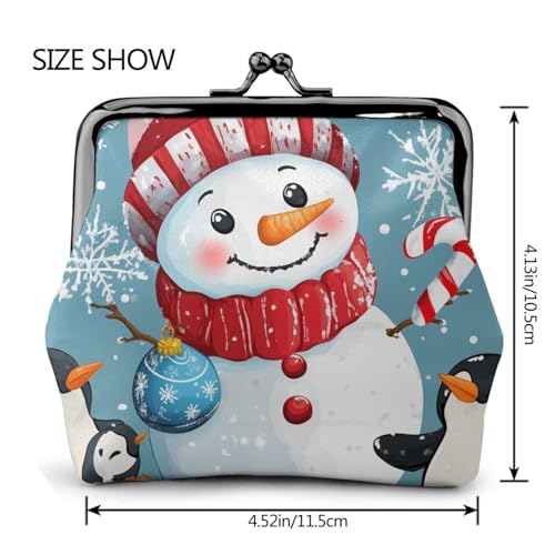 Pu Leather Buckle Coin Purse Snowman-Penguin-Christmas-Cane Girls Kiss-Lock Change Purse Wallets 5