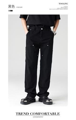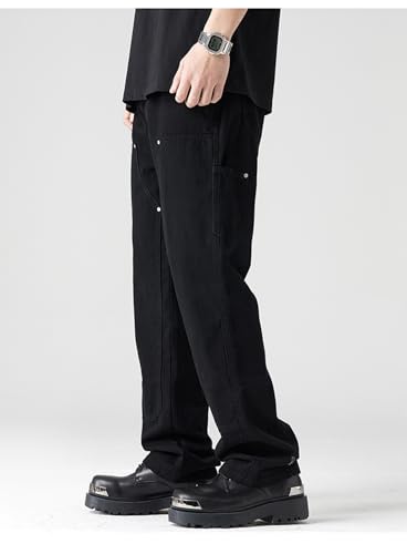 Jeans Pants Trouser Denim High Street Rivet Woodcutting Workwear Men's Straight Casual Handsome Large Clothing 7