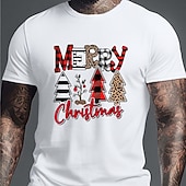 More information about Men's Tree Merry Christmas T Shirt Tee Top Cotton Short Sleeve Graphic Shirt White Dark Blue Beige Comfortable Tee Sports Outdoor Holiday Fashion Designer Clothing