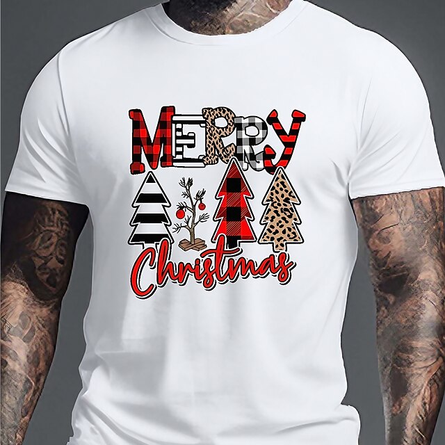 Men's Tree Merry Christmas T Shirt Tee Top Cotton Short Sleeve Graphic Shirt White Dark Blue Beige Comfortable Tee Sports Outdoor Holiday Fashion Designer Clothing 8